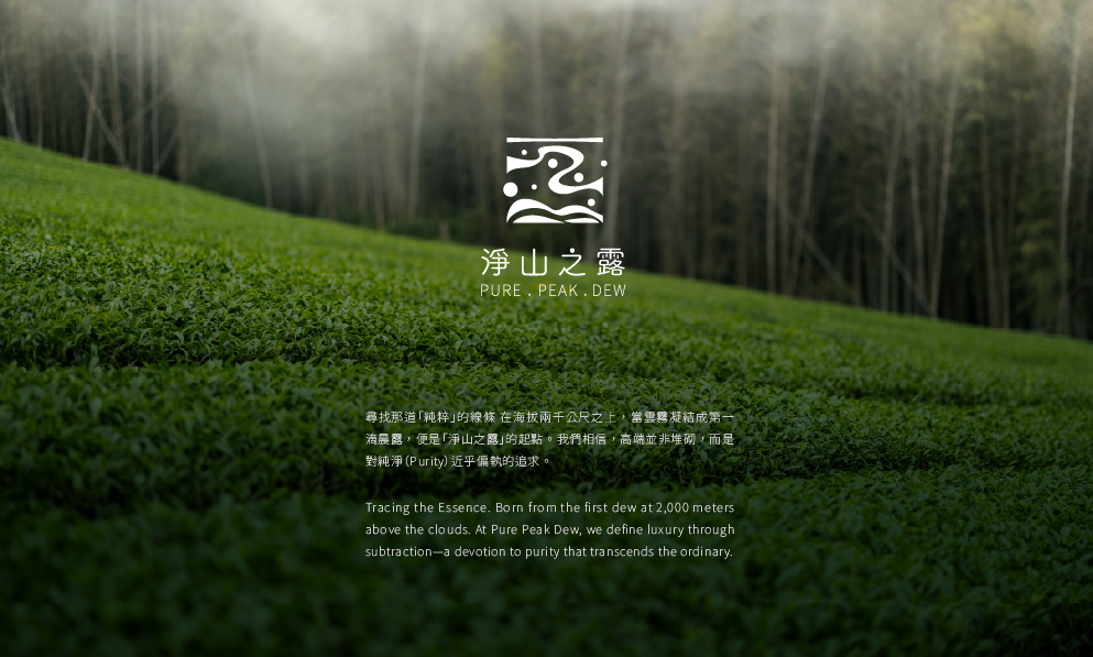 在海拔兩千公尺之上,當雲霧凝結成第一滴晨露,便是「淨山之露」的起點。我們選擇以「減法」重新定義茶。相信,高端並非堆砌,而是對純淨(Purity)近乎偏執的追求。